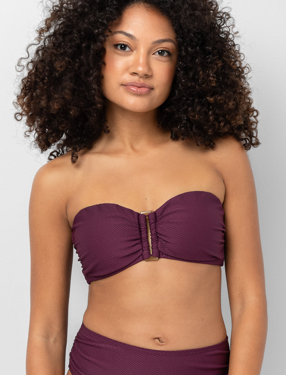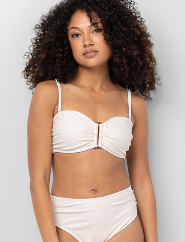 Haut de bikini texturé à bretelles amovibles, pensé pour vous offrir un maintien confortable et un style polyvalent. L’anneau au buste ajoute une touche féminine à votre tenue plage.