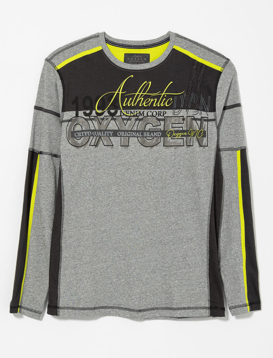 Adoptez un style moderne avec ce t-shirt à manches longues rehaussé de détails contrastants et d’un imprimé audacieux. Profitez d’un confort idéal et d’un look dynamique au quotidien.