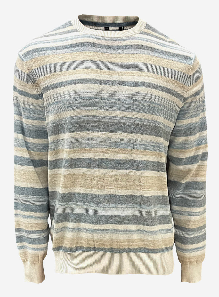 Ce chandail de tricot à rayures pour homme allie style et confort. Son col rond classique et sa coupe polyvalente en font un essentiel pour un look chic au quotidien.