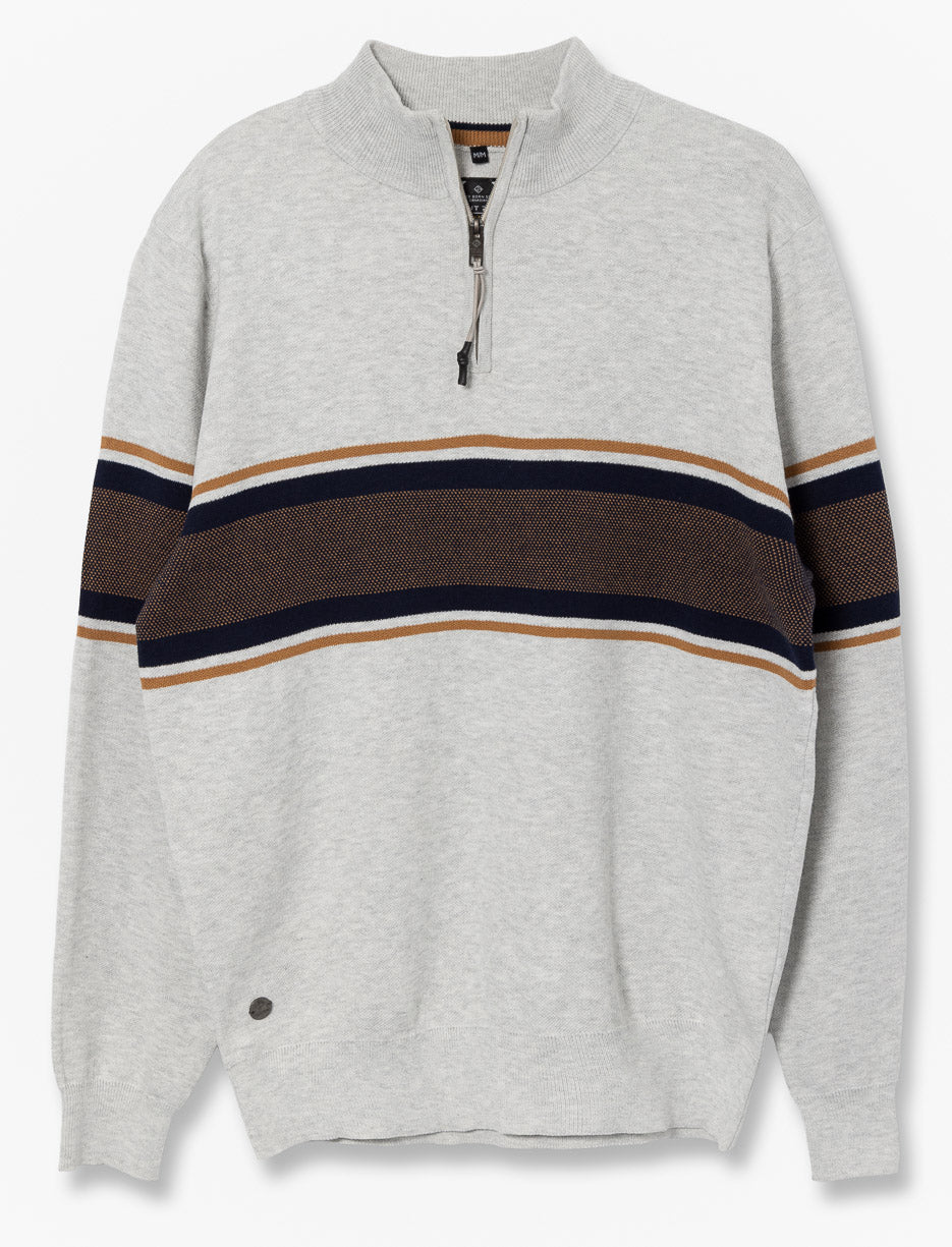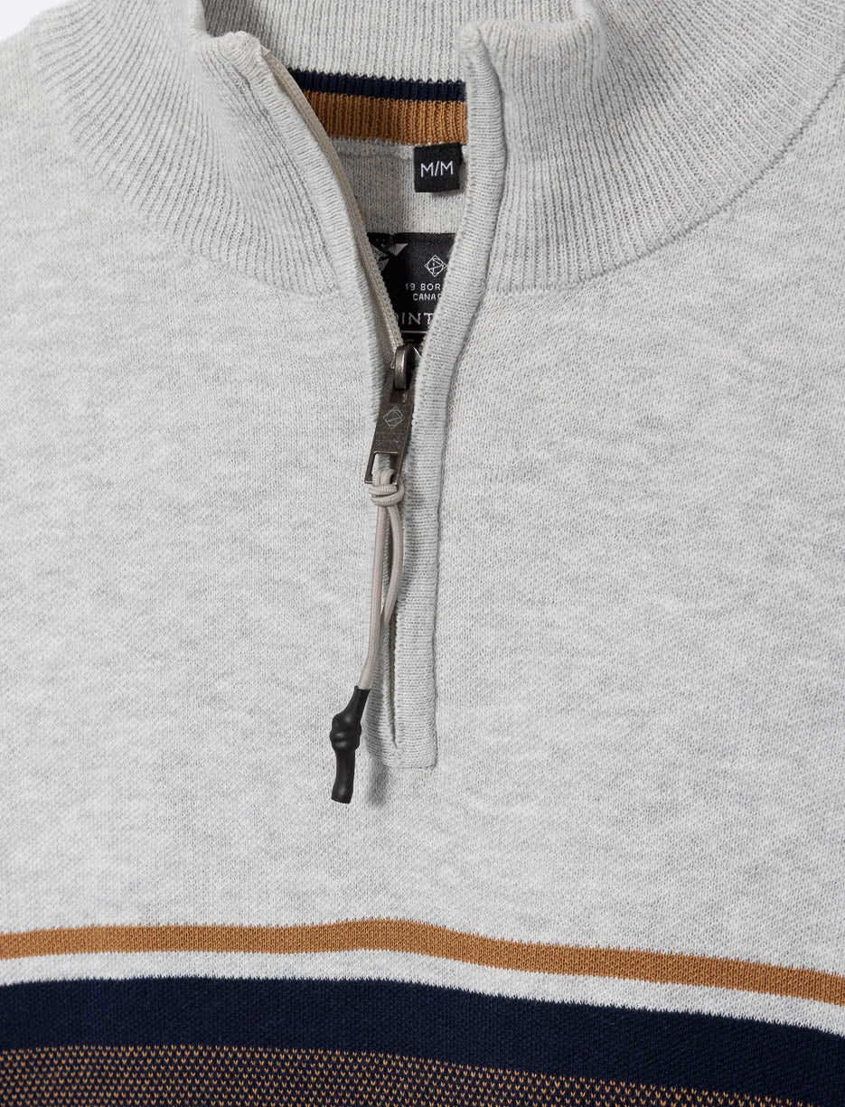Confortable et polyvalent, ce chandail en tricot demi-zip offre un look soigné grâce à son col montant et sa bande contrastante. Parfait pour rehausser vos tenues décontractées ou de bureau.