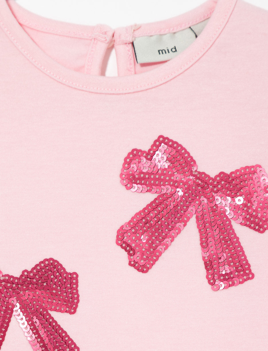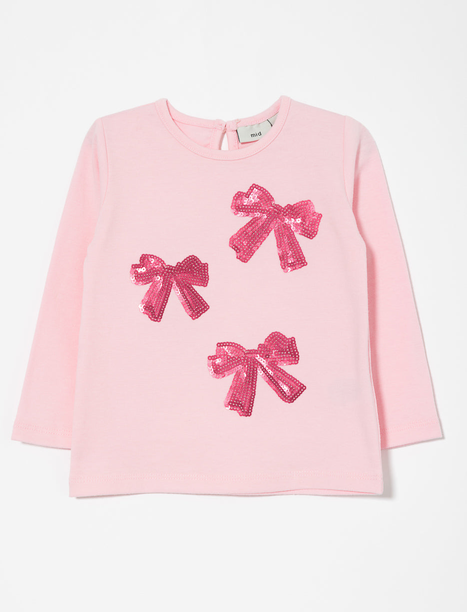 T-shirt avec nœuds à paillettes - bébé fille