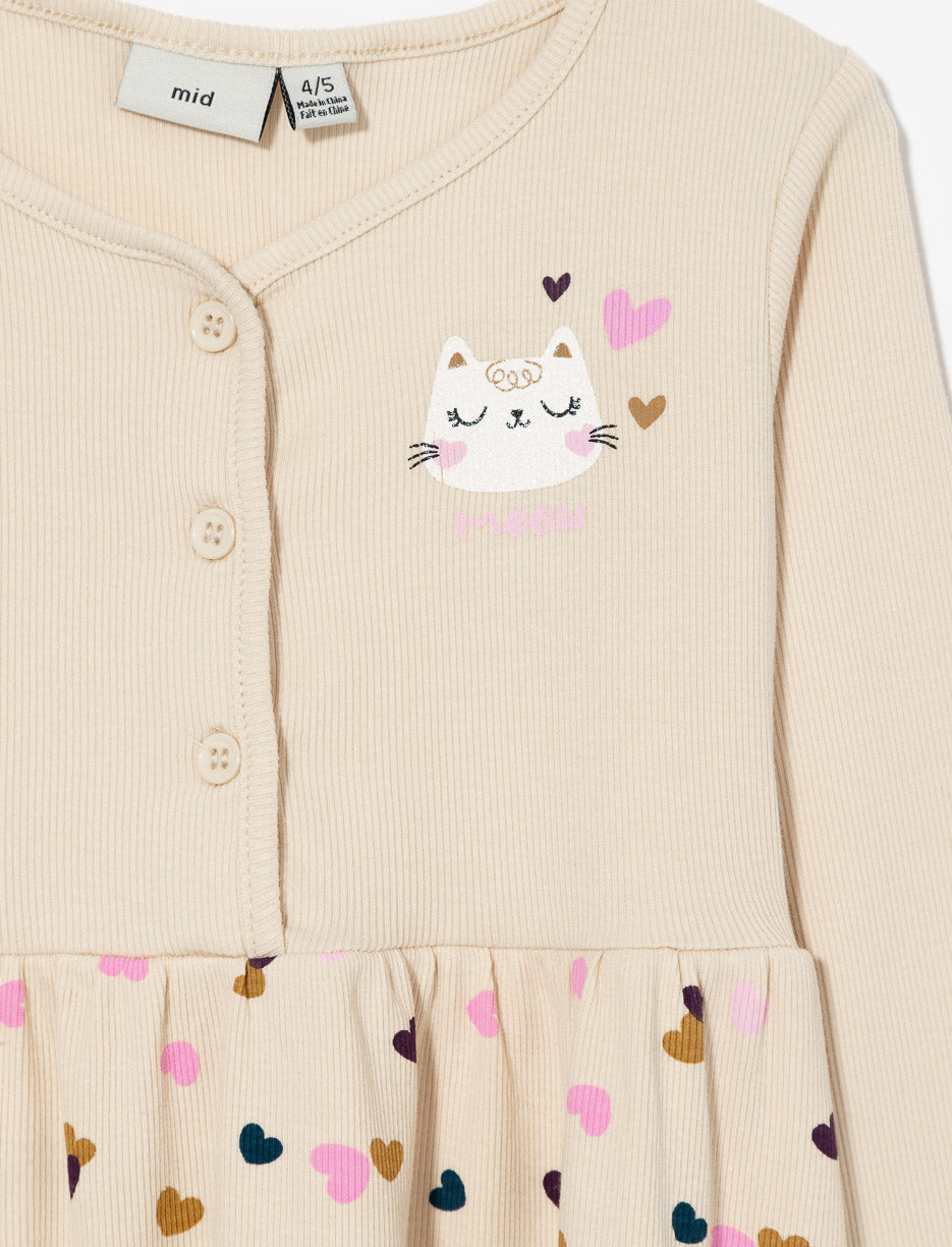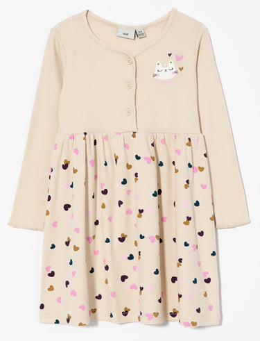 Confortable et joyeuse, cette robe imprimée à manches longues accompagnera votre petite fille dans ses moments de jeu comme de détente. Son haut boutonné et sa jupe évasée apportent une touche pratique et adorable.