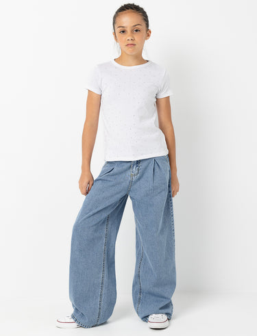 Offrez à votre adolescente un jean à jambes larges avec plis, alliant confort et style pour l’accompagner dans toutes ses aventures.