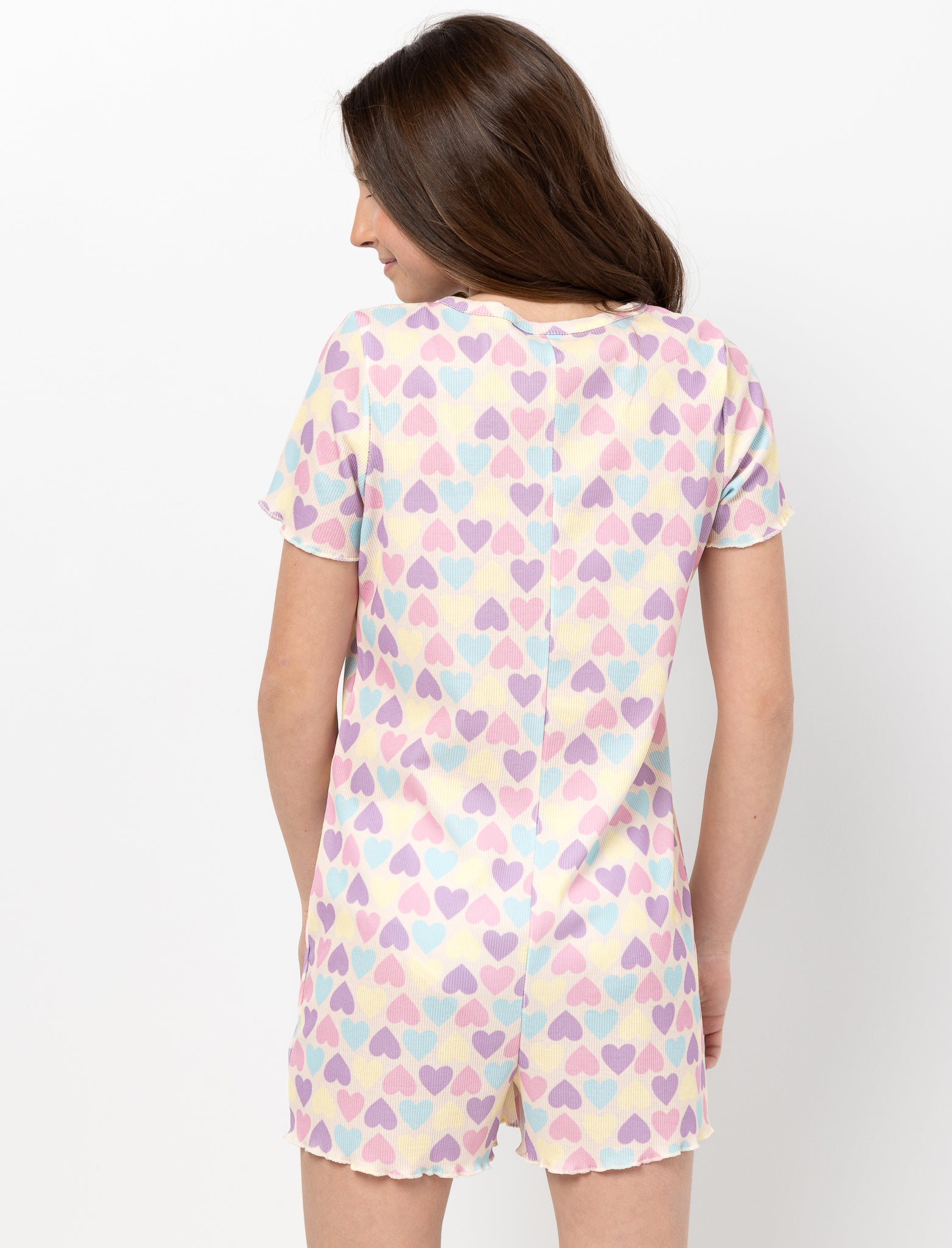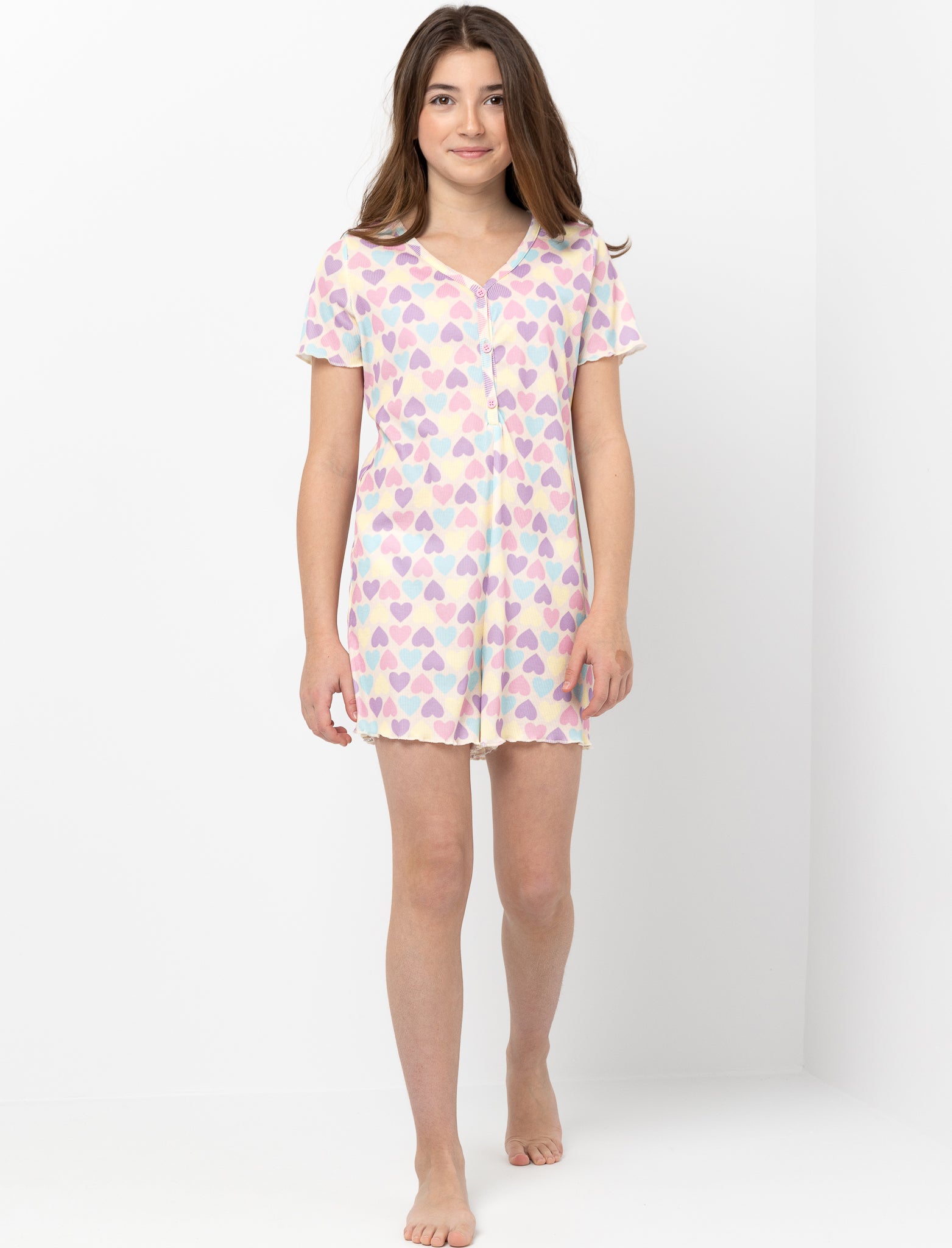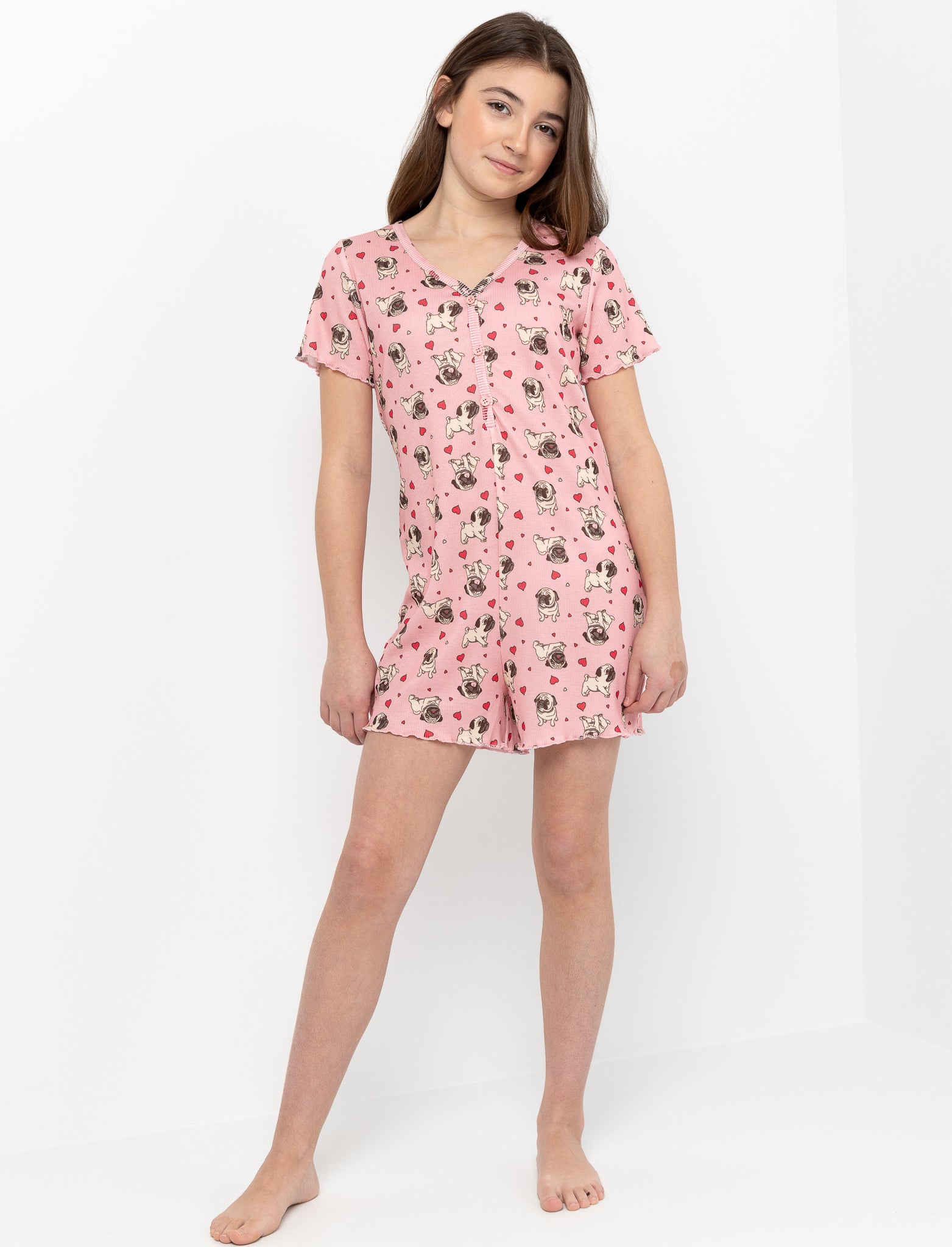 Un pyjama une pièce facile à aimer. Les petits cœurs ajoutent une touche douce, tandis que la fermeture boutonnée permet à votre ado de l’enfiler simplement, pour des moments de détente confortables.