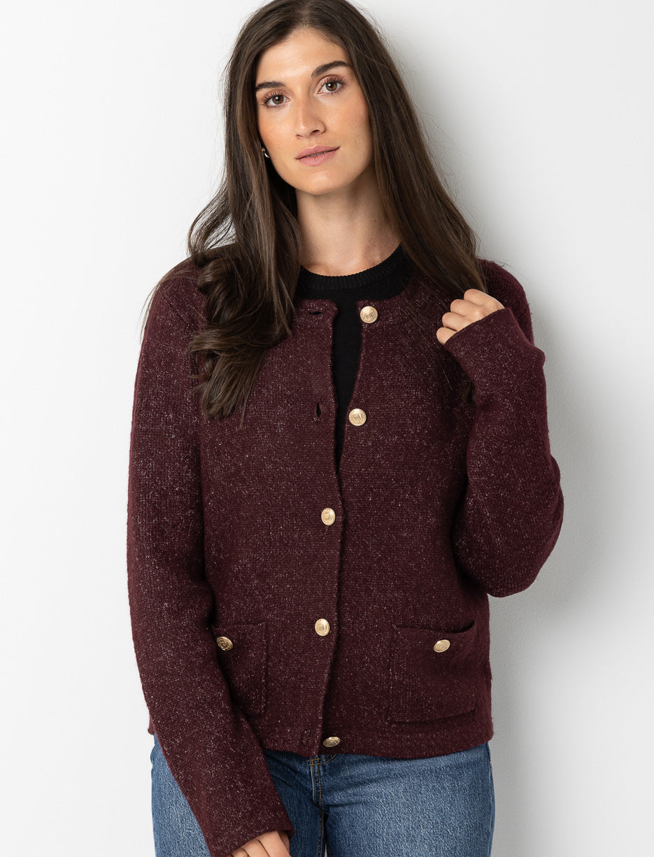 Un cardigan en tricot doux, parfait à enfiler par-dessus un chandail pour plus de style et de chaleur. Ses boutons dorés ajoutent une touche chic aux tenues du quotidien.