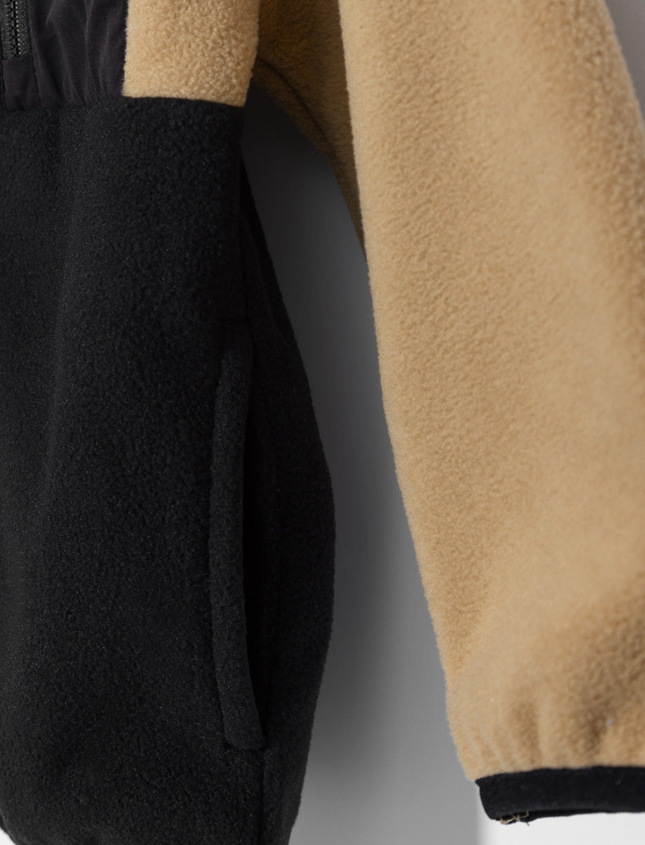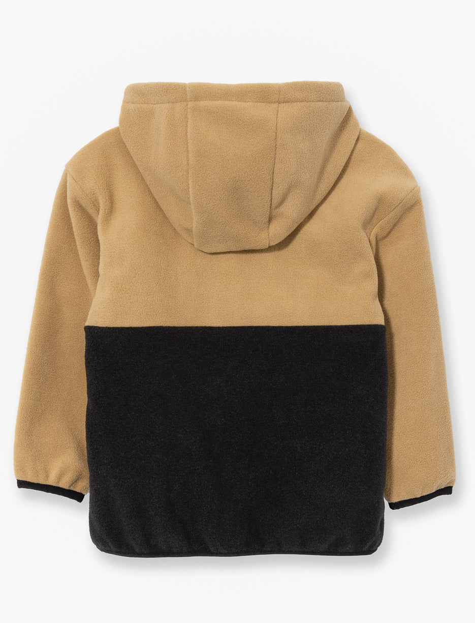 Parfait pour les journées fraîches, cette veste zippée en polar garde votre garçon bien au chaud. Son design à blocs de couleurs et son capuchon douillet ajoutent une touche cool à toutes ses aventures dehors.