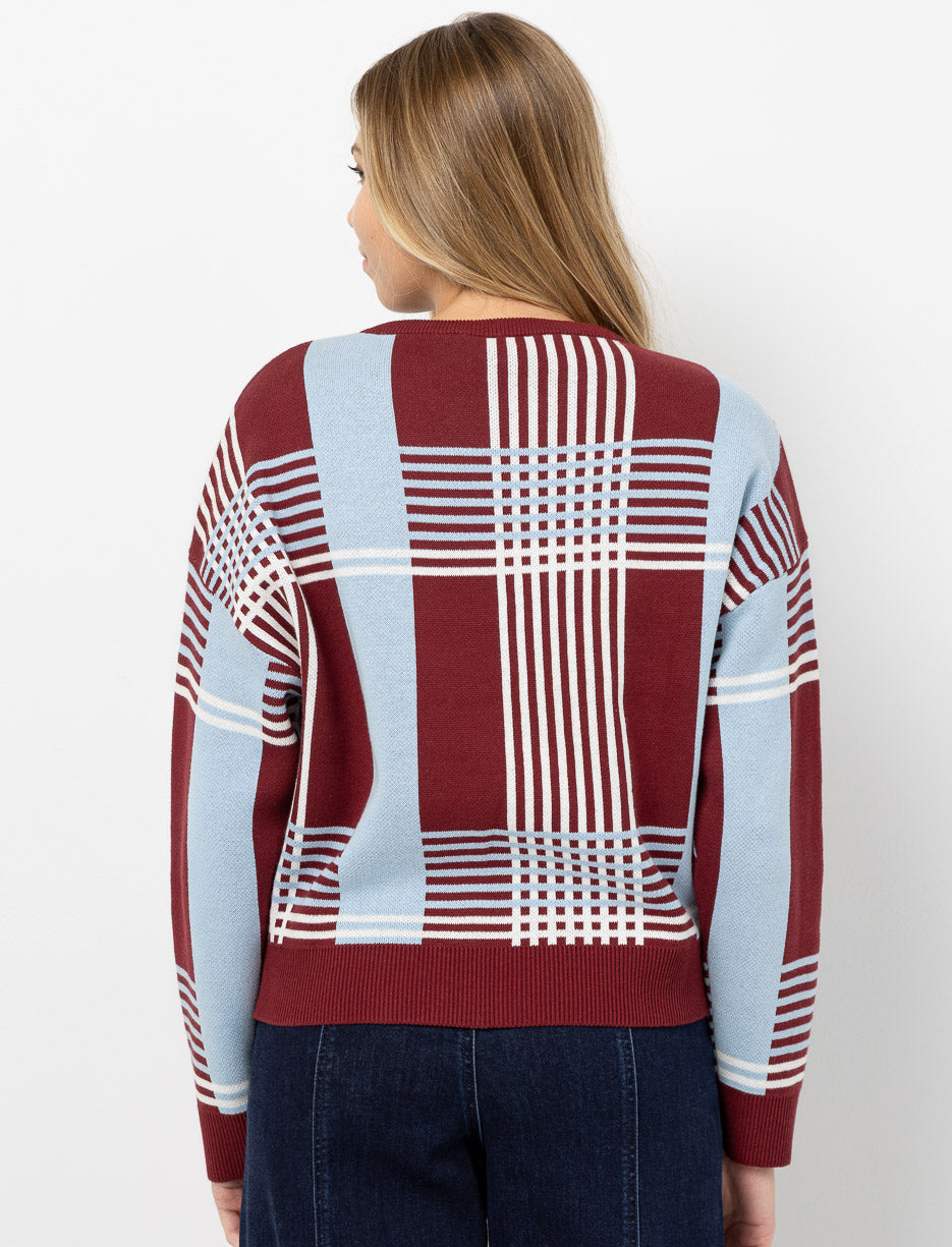 Apportez une touche de style à vos tenues avec ce chandail en tricot au motif jacquard. Sa coupe boxy et ses épaules tombantes créent une allure moderne et décontractée, parfaite pour toutes les occasions.