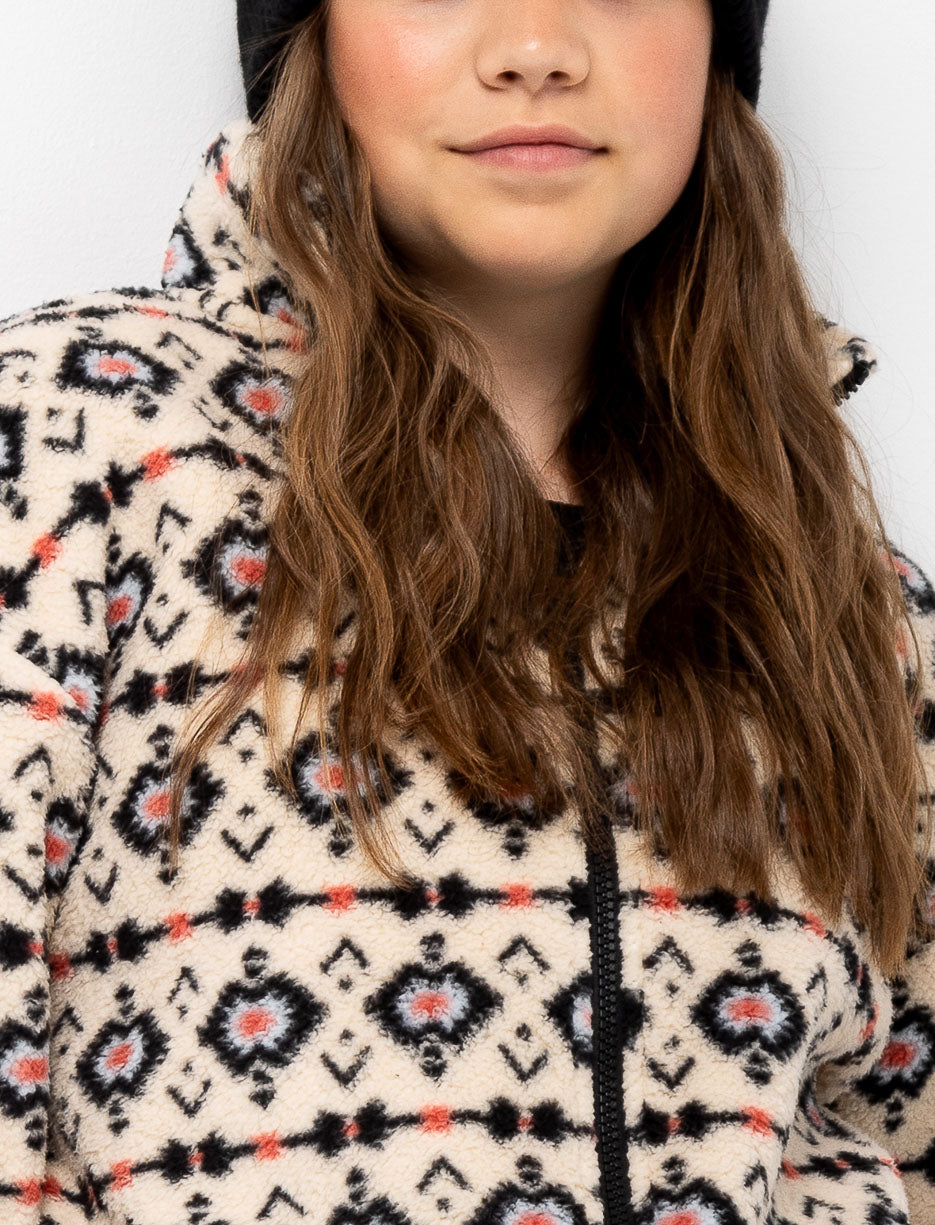Offrez à votre fille un confort douillet avec cette veste en sherpa à motifs aztèques, parfaite pour affronter le froid avec style et chaleur.