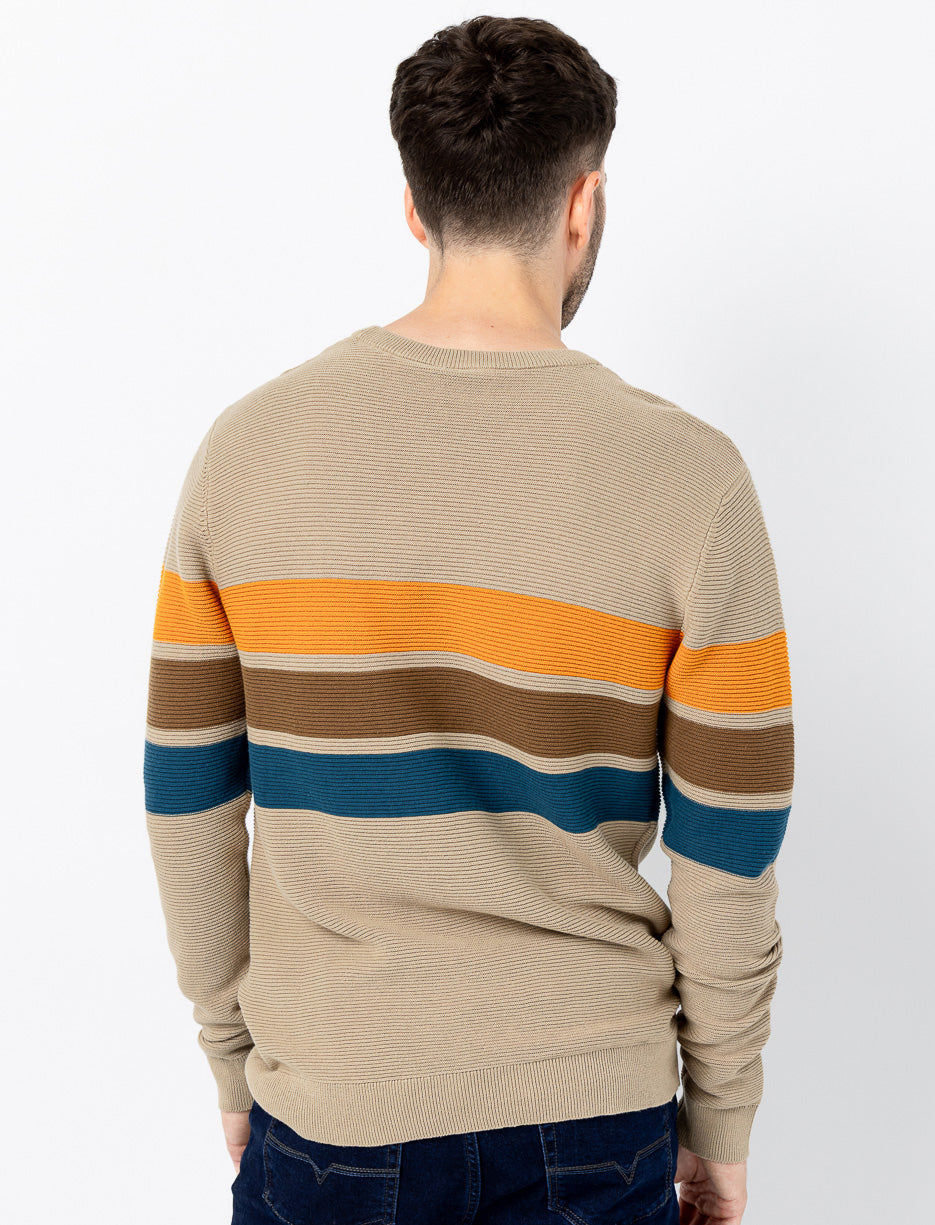 Un tricot texturé qui marie style et confort. Ses rayures contrastantes ajoutent une touche moderne à votre look du jour.