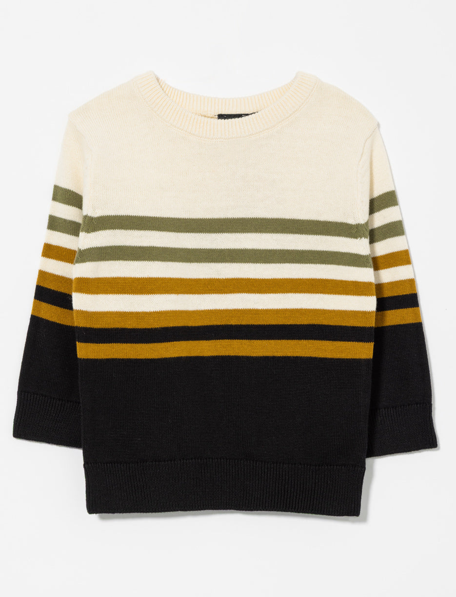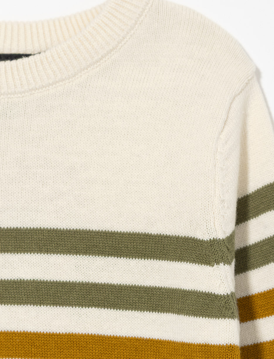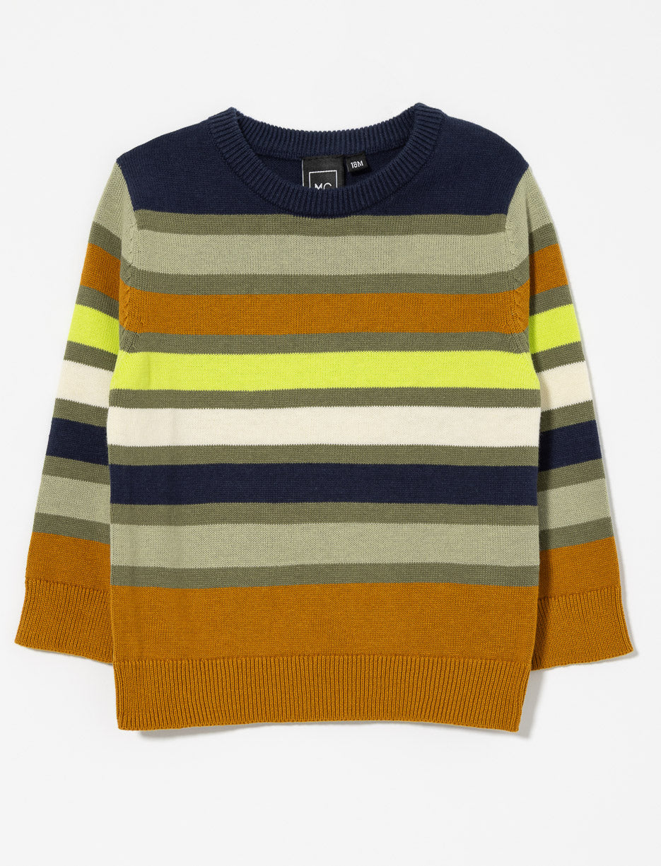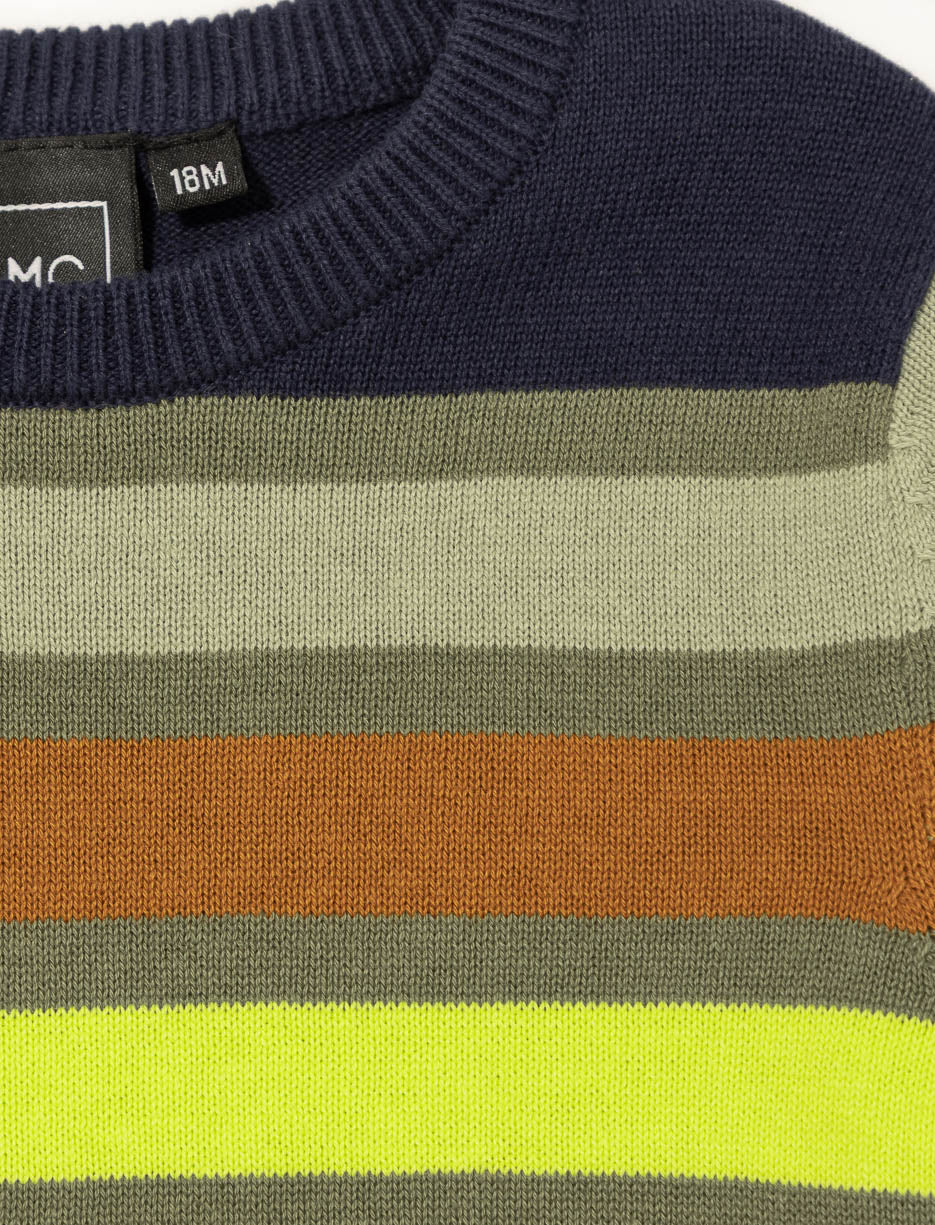 Un chandail en tricot doux à manches longues et col rond. Ses rayures colorées apportent une touche vive et réconfortante aux journées fraîches.