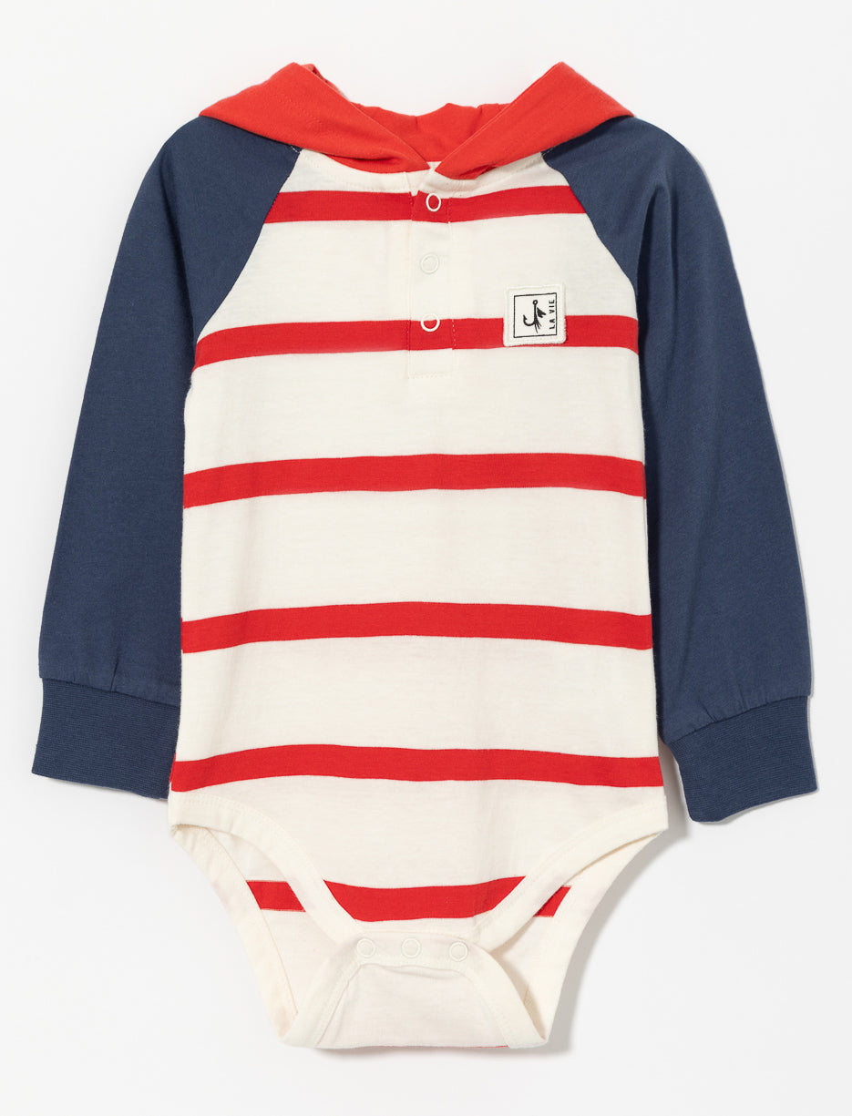 Un cache-couche qui offre à bébé une allure marine adorable. Tissu doux, manches longues et capuchon pratique pour des journées confortables, pleines de petits moments à savourer.