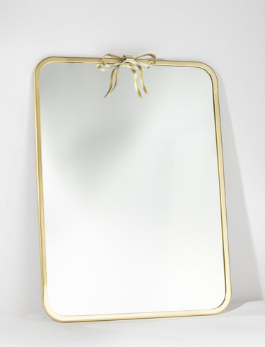 Ce miroir en métal doré, orné d’une élégante boucle au-dessus du cadre, apporte une touche chic et féminine à votre décor. Parfait pour une chambre ou une entrée. Dimensions : 30,5 x 2,5 x 42 cm.