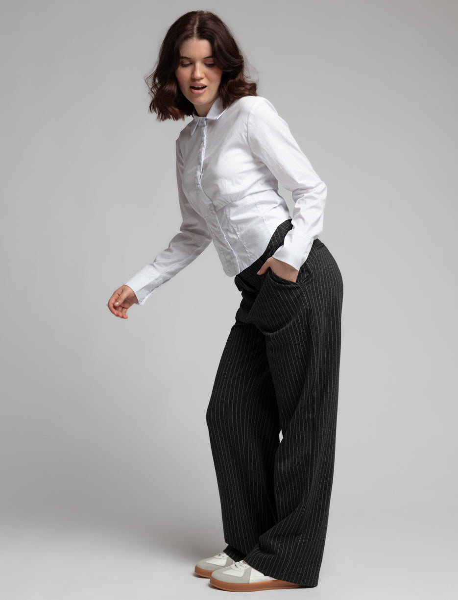 Rehaussez votre garde-robe avec ce pantalon tendance, idéal pour un charme professionnel ou une sophistication décontractée. Le design classique à fines rayures ajoute une touche intemporelle à toute tenue.