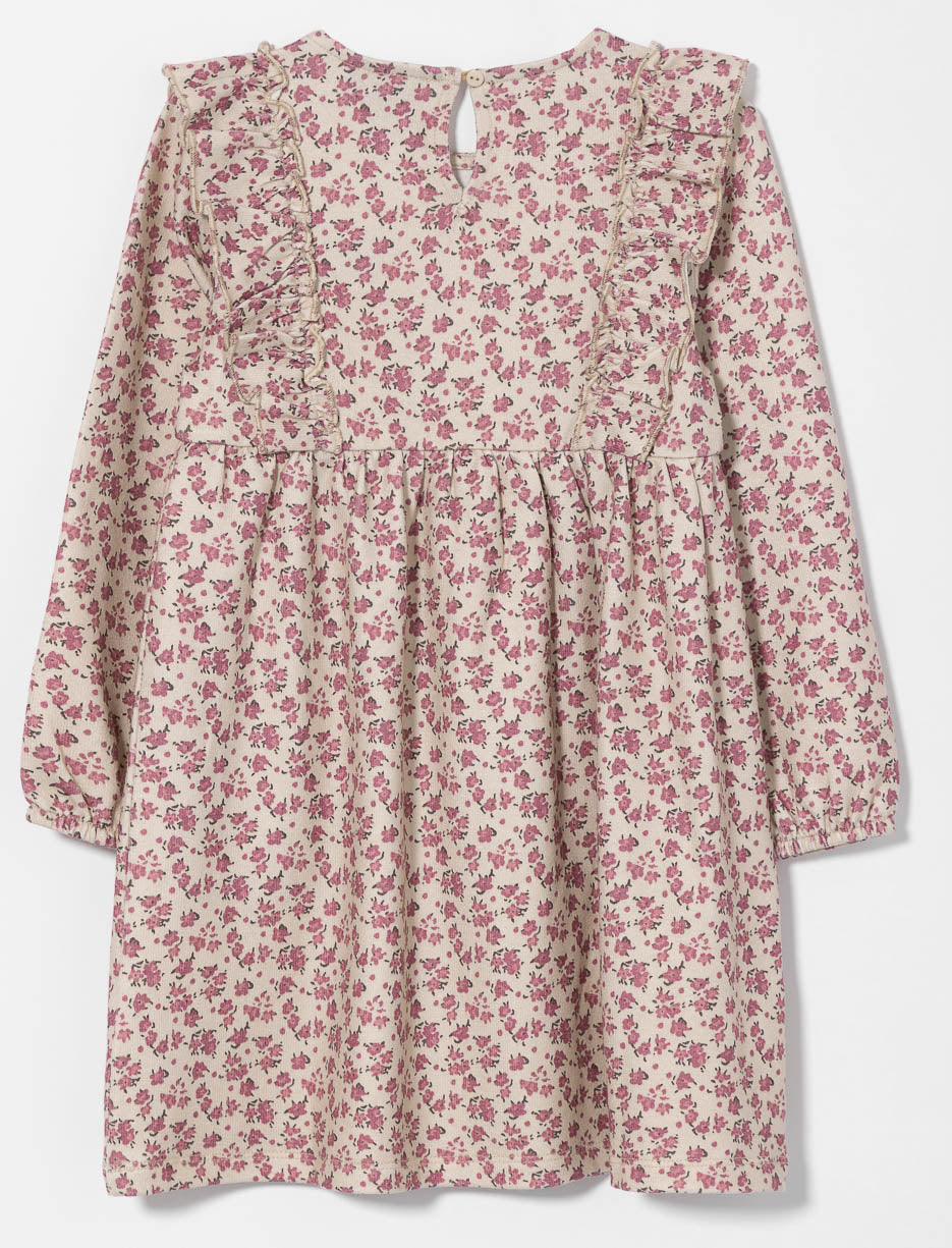 Cette robe à fleurs ornée de volants délicats sur le devant ajoute une touche romantique à la tenue. Confectionnée dans un tissu léger avec manches longues, elle assure un confort optimal au quotidien comme lors des occasions spéciales.