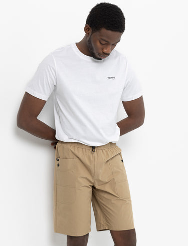 Ce short pour hommes offre confort et praticité avec sa taille élastique et cordon de serrage ajustable. Deux poches avant avec boutons sécurisent vos affaires. Un choix fiable pour le quotidien.