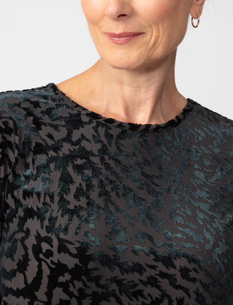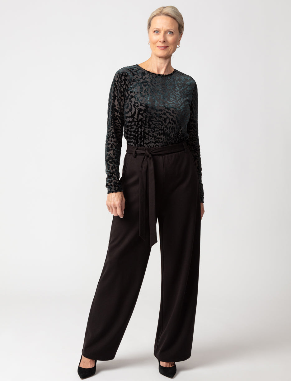 Ce t-shirt à manches longues, avec sa texture en velours élégante, est parfait pour créer de magnifiques ensembles.