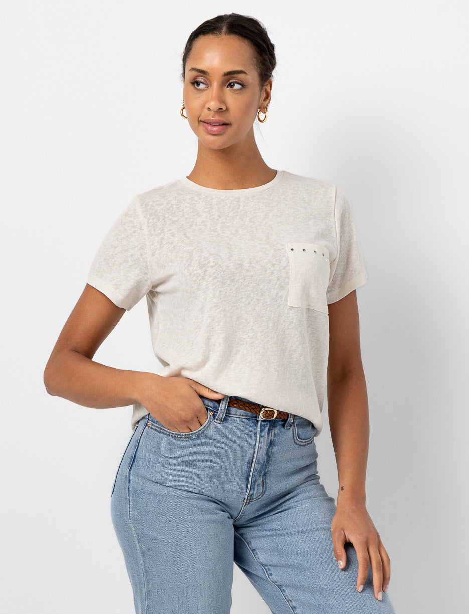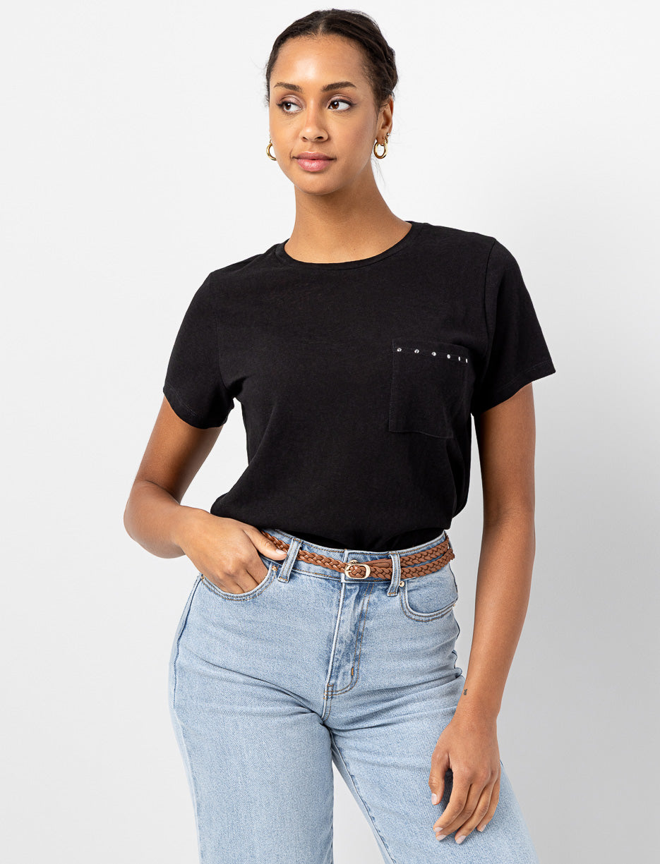 T-shirt uni à poche cloutée
