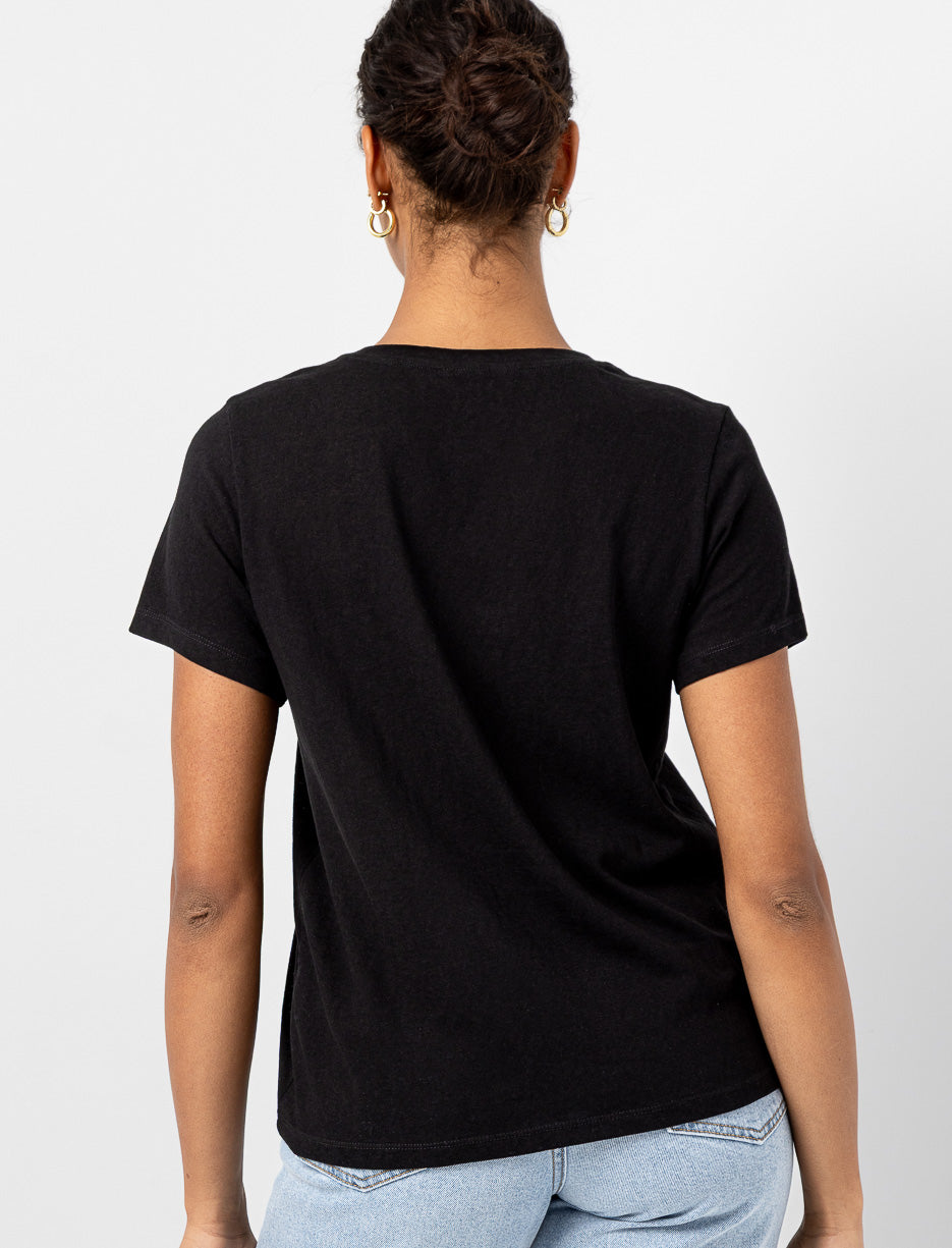 Ajoutez une touche de brillance discrète à vos tenues du quotidien grâce à ce t-shirt à manches courtes, orné de petits clous brillants sur la poche avant. Simple, pratique et facile à agencer.