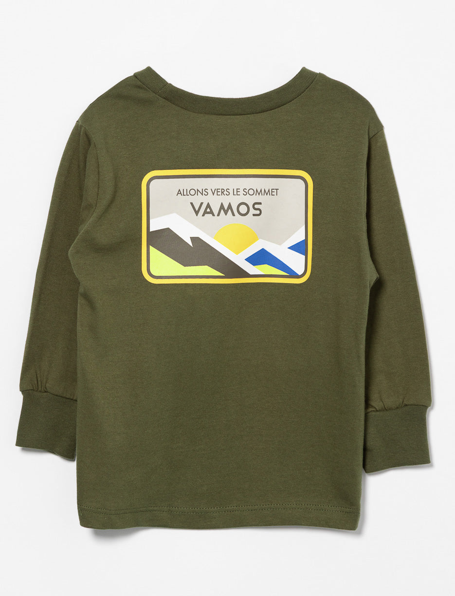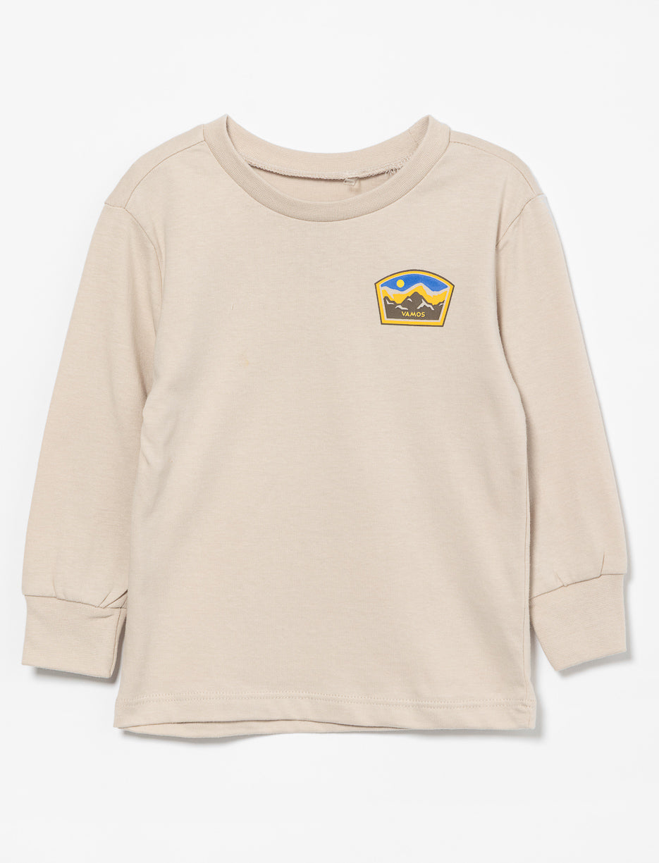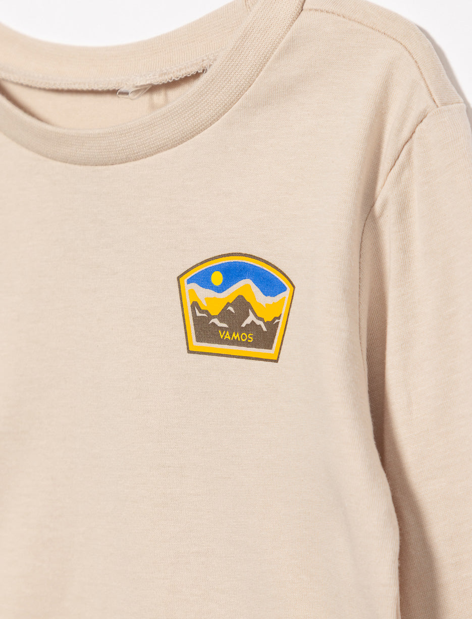 Un t-shirt manches longues pensé pour accompagner les découvertes du quotidien, avec une touche d’aventure bien dosée.