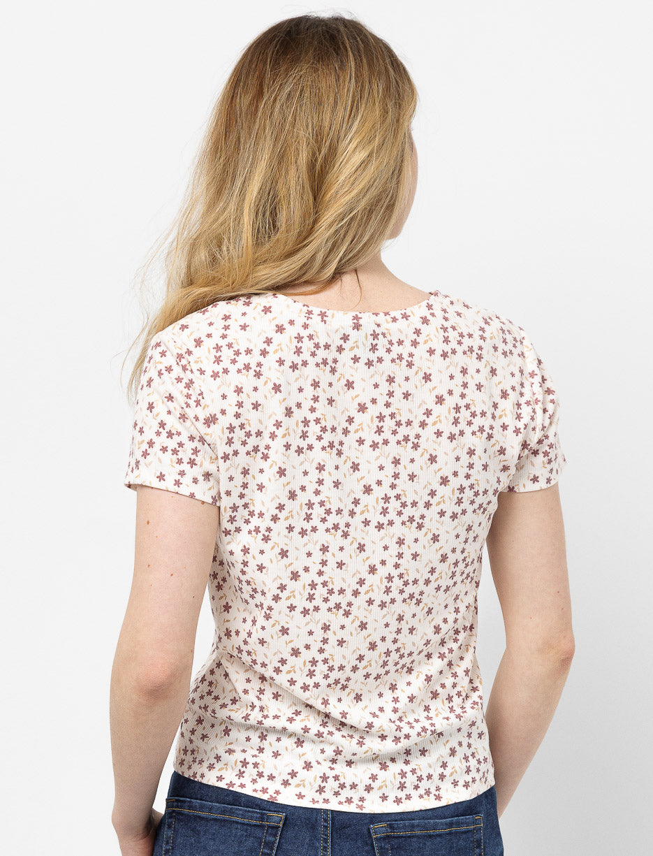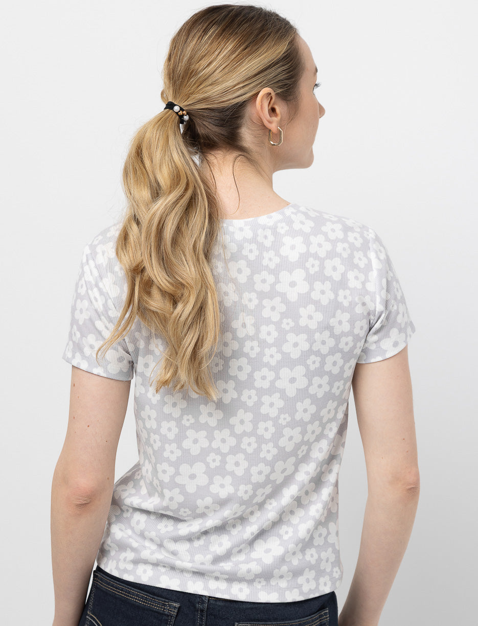 Léger et confortable, ce t-shirt côtelé à fleurs en relief ajoute une touche de fraîcheur à votre garde-robe. Parfait pour vos tenues du quotidien.