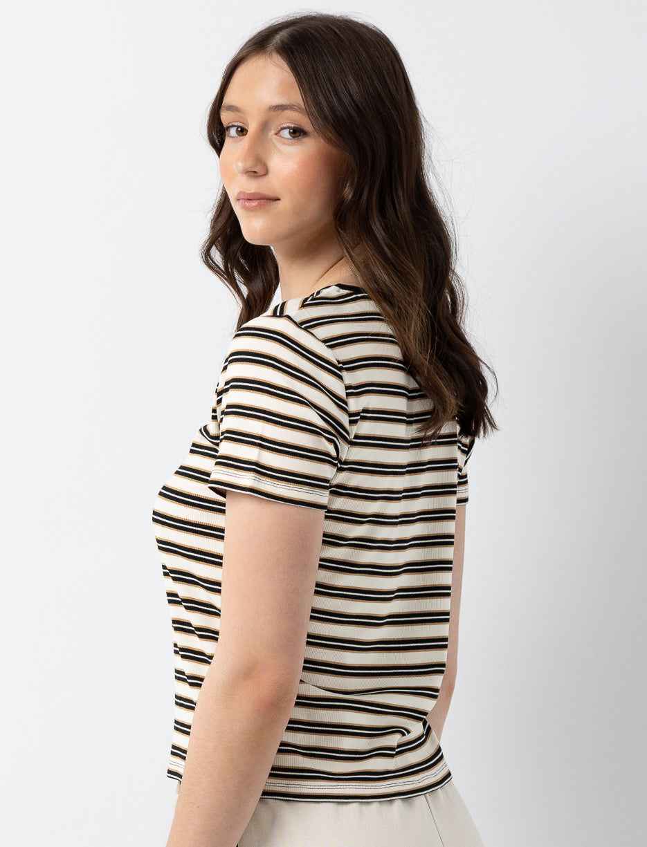Un t-shirt à rayures polyvalent qui se porte en toute simplicité. Son style intemporel s’intègre parfaitement à une garde-robe décontractée.