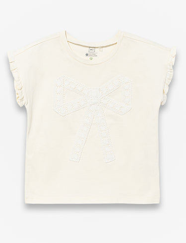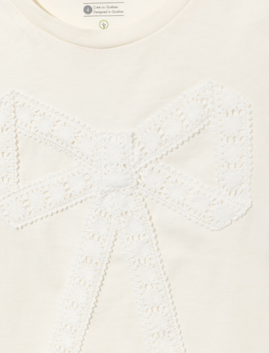 T-shirt pour petite fille avec un style adorable et confortable. Les manches dolman fluides offrent une liberté de mouvement parfaite pour jouer et s'amuser. Le col rond classique et la boucle en dentelle délicate sur le devant ajoutent une touche de féminité charmante. Parfait pour créer des looks tendance et amusants au quotidien!