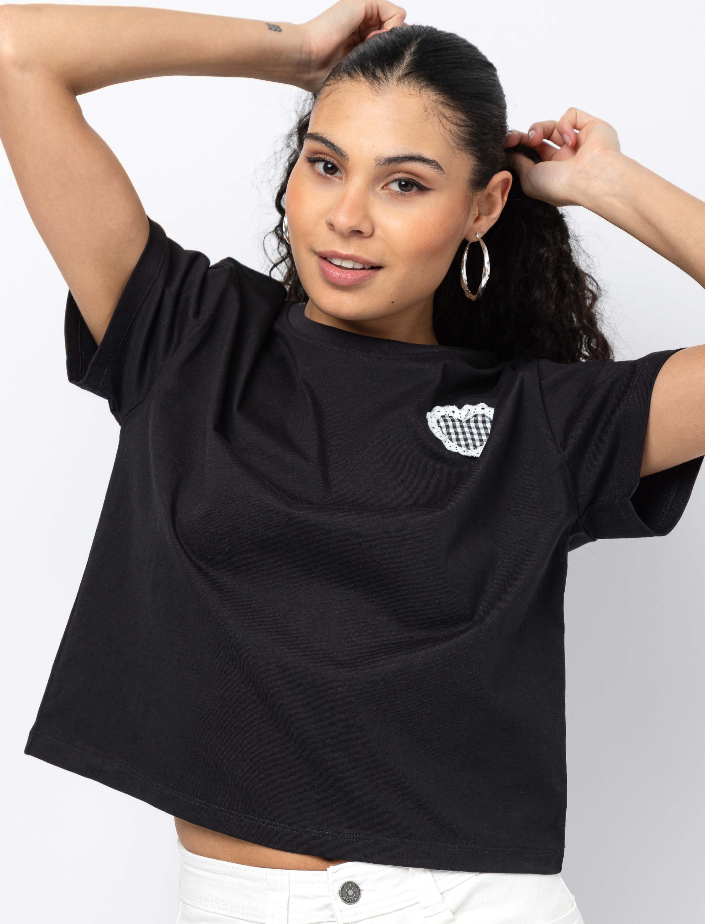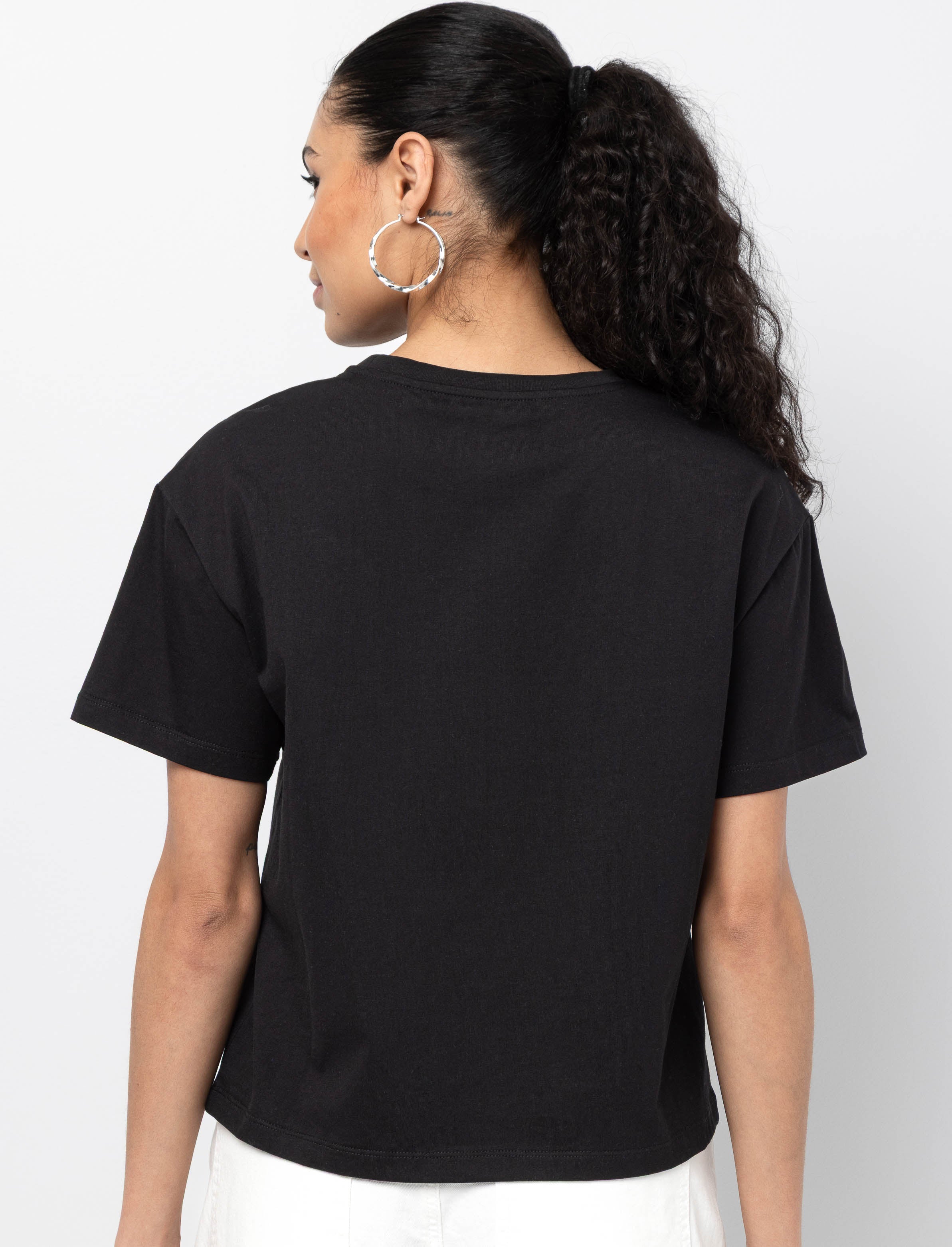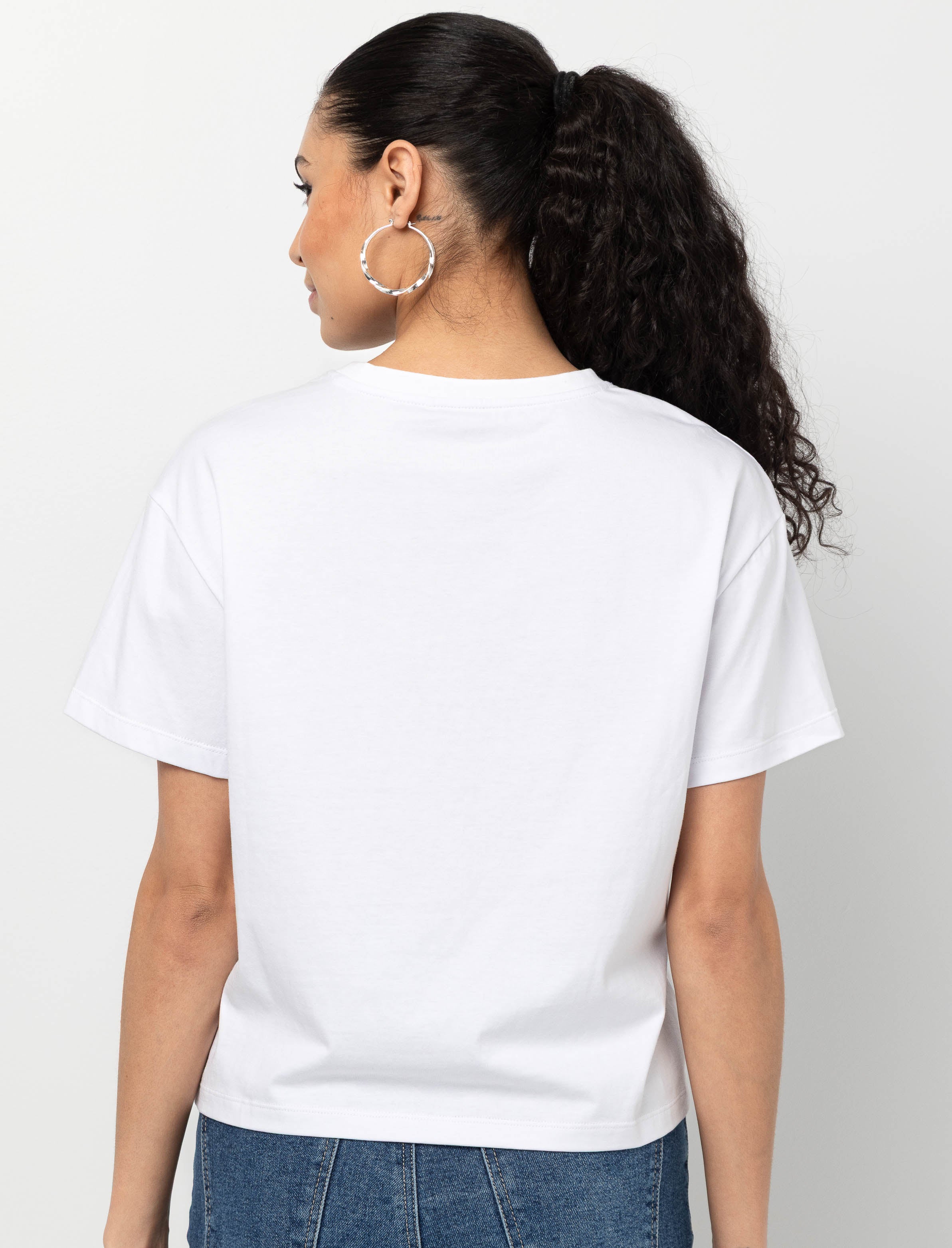 Un t-shirt à la coupe boxy qui apporte une allure détendue. Le petit imprimé à l’avant ajoute une note subtile, parfaite pour composer des tenues faciles à porter au quotidien.